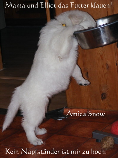 Gegen 4 kam Liane mit ihrer großen Weißen und hat Snow besucht. Diesmal durfte ihre Weiße auch mit hier rein.. Kennen lernen war angesagt.. Die Begeisterung von Kimba hielt sich aber in Grenzen... Wird schon noch!!!