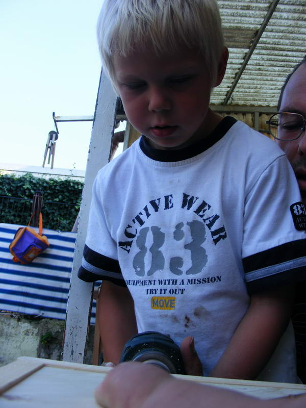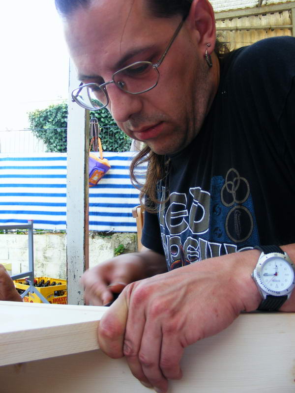 Seit 2 Tagen baut Stefan an der Wurfkiste.... Ich denke morgen Abend wird sie endlich fertig sein und ihren Platz im Wohnzimmer finden. Die Kinder haben hier und da kräftig mit geholfen beim Bauen.