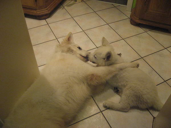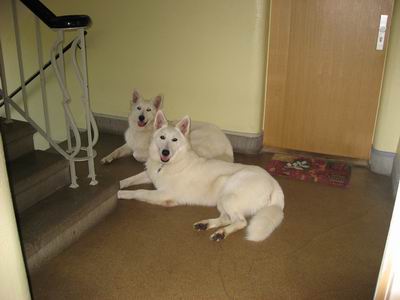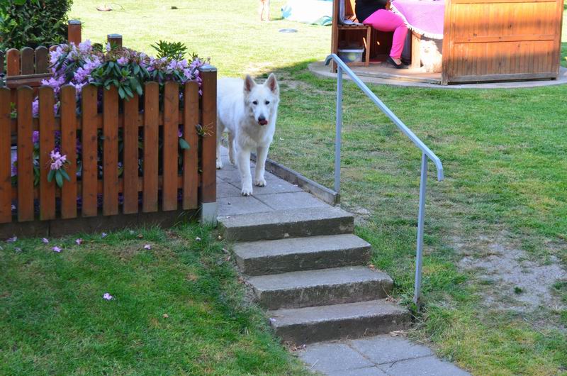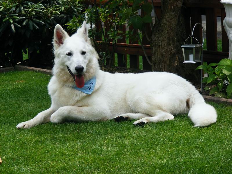 Aber Ende gut Alles gut... Familie Reckgert kam sah und siegte.. so hat auch Aaron mit 10 Wochen seinen Umzug ins endgültige zu Hause angetreten. Dort lebt er mit dem Ehepaar und der Tochter sowie der weißen Schäferhündin Lena zusammen. Zur Tagesbetreuung sind auch noch 2 West Highland Terrier da.. also immer Aktion rund um Aaron. Äm Rocky :) Er ist immer noch ein richtiger Dickkopf, will sich immer wieder durchsetzen aber Familie Reckgert setzt sich gut durch und so klappts doch! Wir freuen uns das Rocky so ein gutes zu Hause gefunden hat, was mit seinem Dickkopf umgehen kann. Gruß Ilka